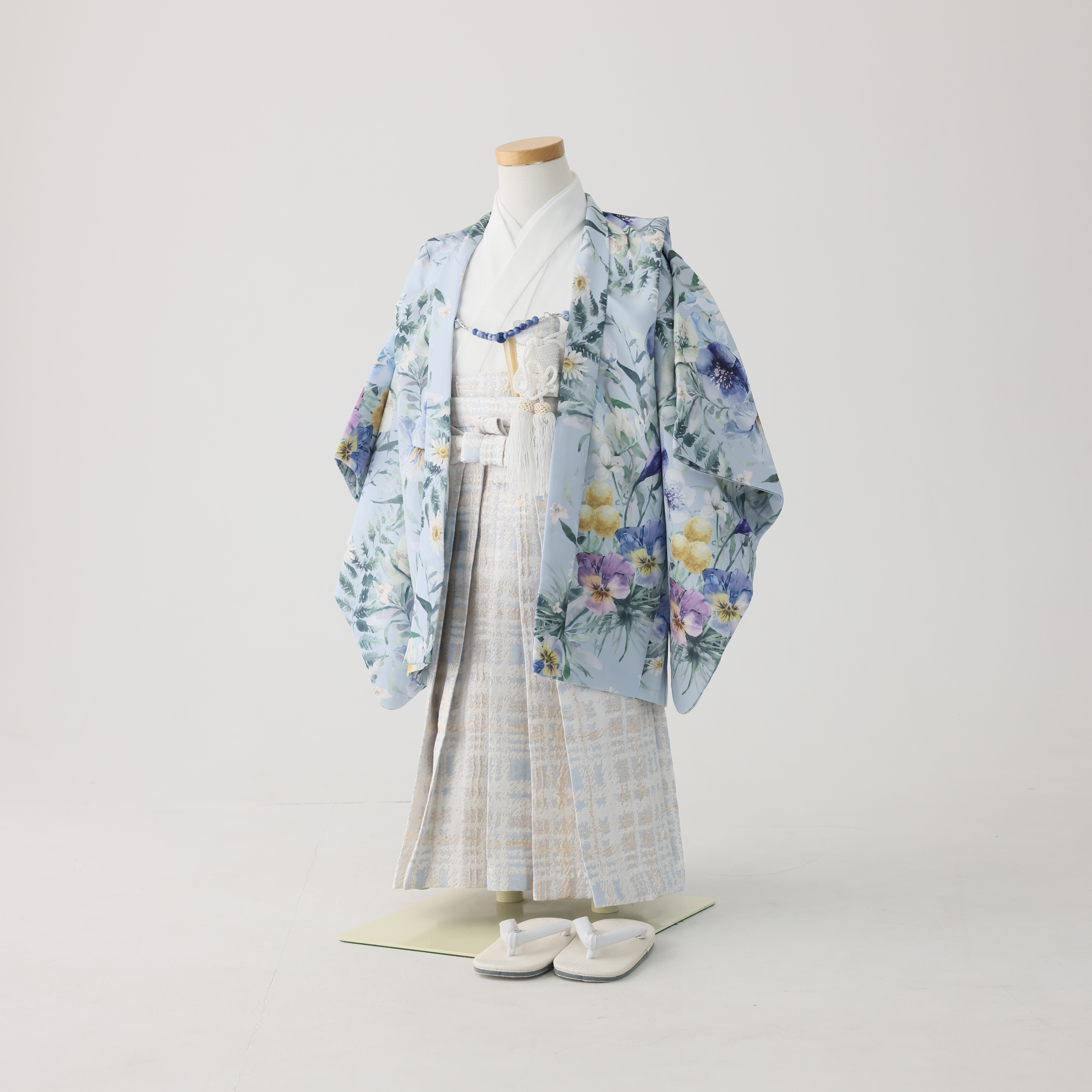 袴は羽織の色味に合わせた水色のツイード生地が使われています!